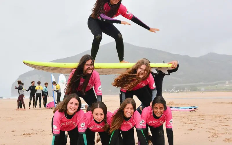 Durante la estancia, los alumnos participan en cursos de surf en la Playa de Berria, donde se combinan la enseñanza técnica con valores educativos y de respeto por el entorno. Las espectaculares playas de Santoña, amplias, limpias y rodeadas de paisajes naturales, son el escenario perfecto para aprender a surfear o mejorar tu nivel bajo la guía de los mejores instructores.