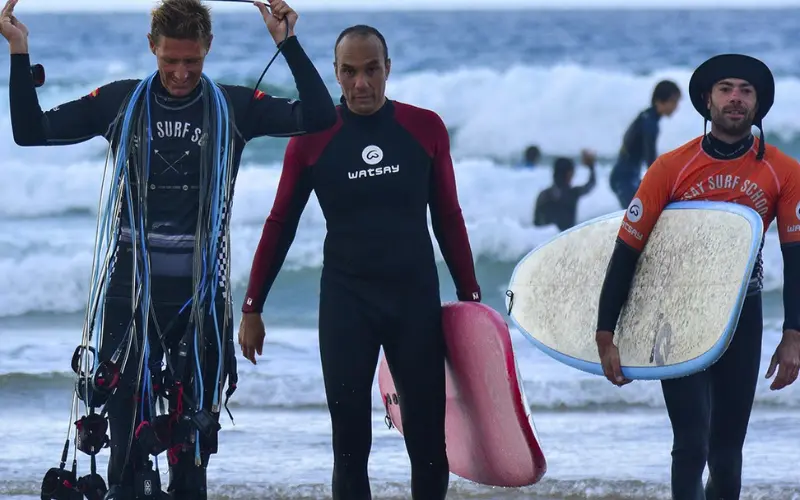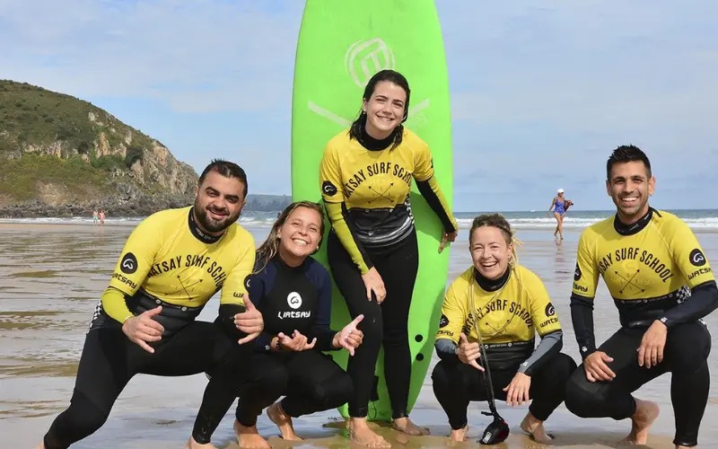 En Watsay Surf School, un equipo de monitores titulados y experimentados acompaña a los alumnos en todo momento, fomentando el espíritu de grupo y la pasión por el surf desde el primer día. Su objetivo es que cada participante se sienta como en casa, disfrutando de un ambiente familiar en plena naturaleza.