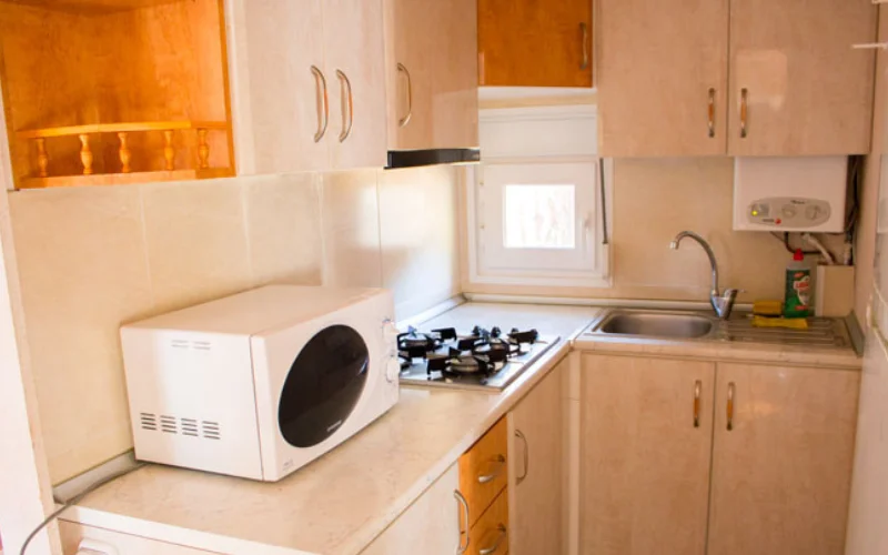 Mobil Home: una opción ideal para familias o grupos, con baño completo, cocina americana equipada, salón con sofá cama, dos habitaciones y porche exterior.