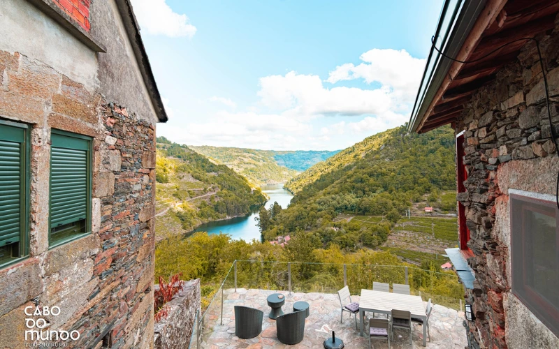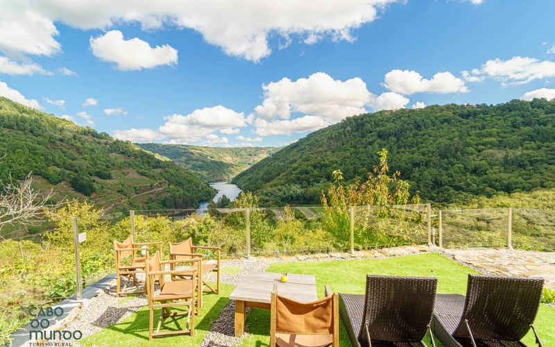 Esta casa rural con encanto en Chantada está situada en la bella aldea de Nogueiras. Cuenta desde la vivienda, con una de las vistas más espectaculares al Miño de toda la Ribeira Sacra lucense, lo que sin lugar a dudas es una experiencia única.