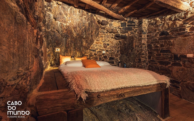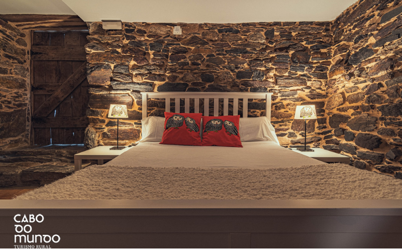 El antiguo establo de la vivienda, se transformó en una de las habitaciones más impresionantes de Cabo Do Mundo. Además de la conservación de las vigas del techo de castaño, tiene salida a dos terrazas abiertas al río Miño, lo que es otra gran experiencia local.