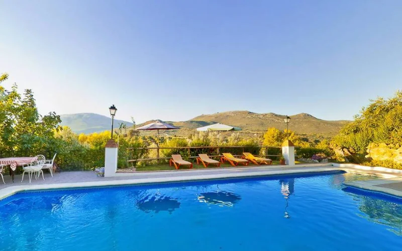 Disfruta de una gran piscina privada con vistas a las montañas, amplias zonas exteriores y un ambiente acogedor que invita al descanso. A solo una hora de Córdoba, Granada y Málaga, es el punto de partida ideal para quienes desean explorar la auténtica Andalucía.