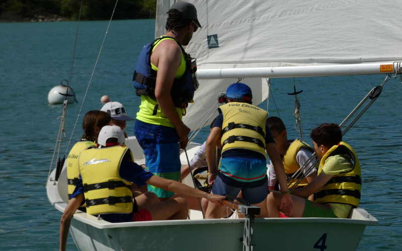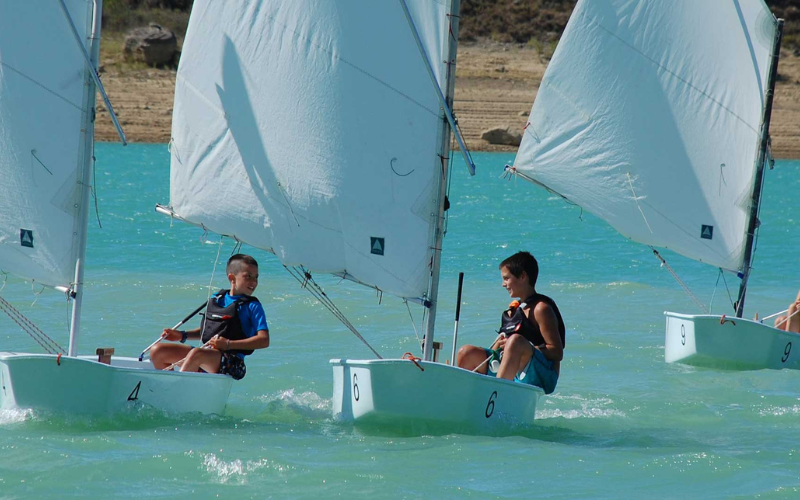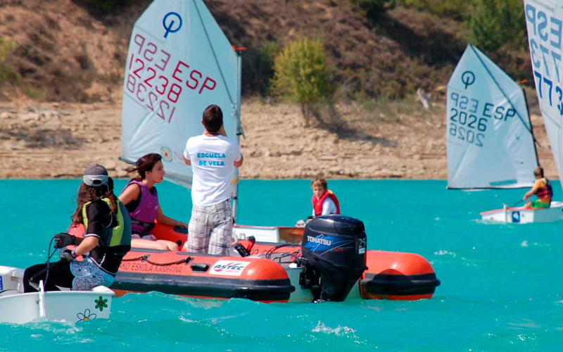 Aprende a navegar con la Escuela Navarra de Vela. Cursos infantiles en el embalse de Alloz: iniciación, diversión y aprendizaje en plena naturaleza.