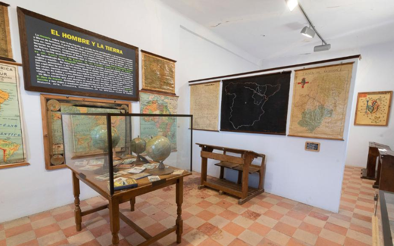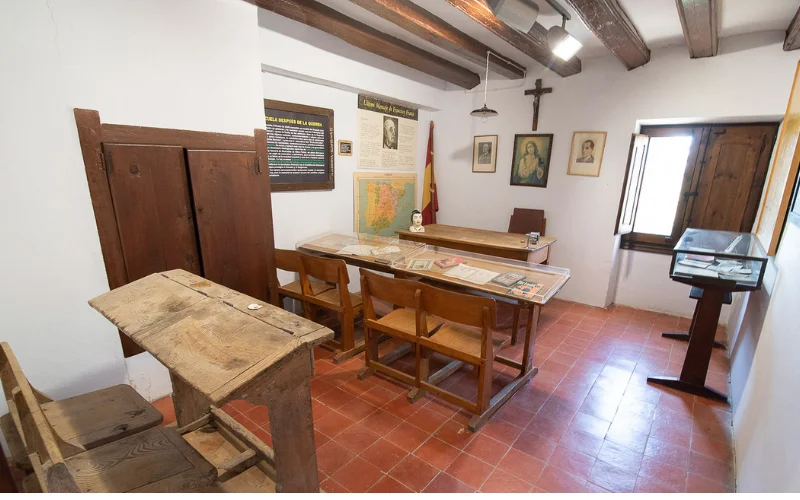 El edificio, antigua escuela y casa del maestro rehabilitada en 2004 por iniciativa de Rafael Jiménez Martínez, alberga pupitres de madera, globos terráqueos, mapas, catecismos, la enciclopedia Álvarez y muchos otros materiales originales de la época. Cada objeto transporta al visitante a un tiempo en el que la enseñanza rural era una labor de vocación y esfuerzo.