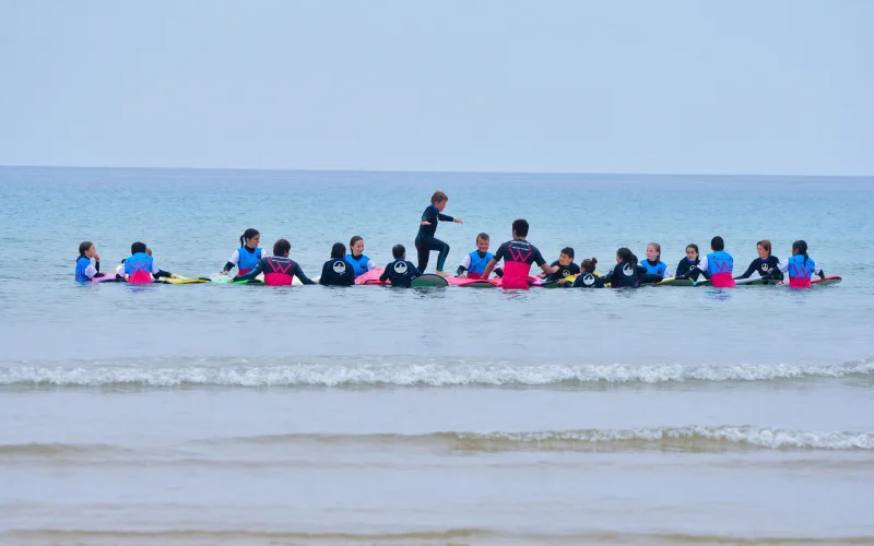 En el Surf Camp Santoña, el surf es el gran protagonista. Las clases se adaptan al nivel de cada participante, combinando técnica, juego y seguridad en cada sesión. Además, el programa se completa con actividades complementarias como artes marciales, chi kung, paddle surf, skate y rutas interpretativas por el entorno natural, ideales para desarrollar equilibrio, concentración y conexión con la naturaleza.